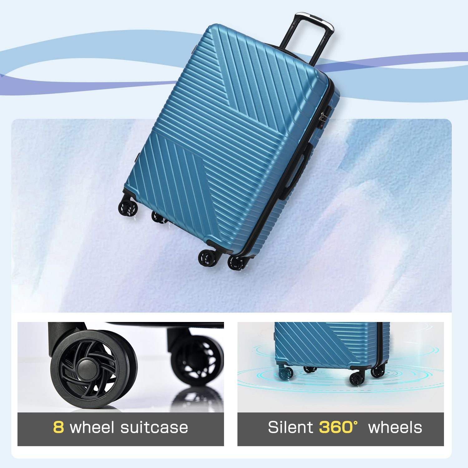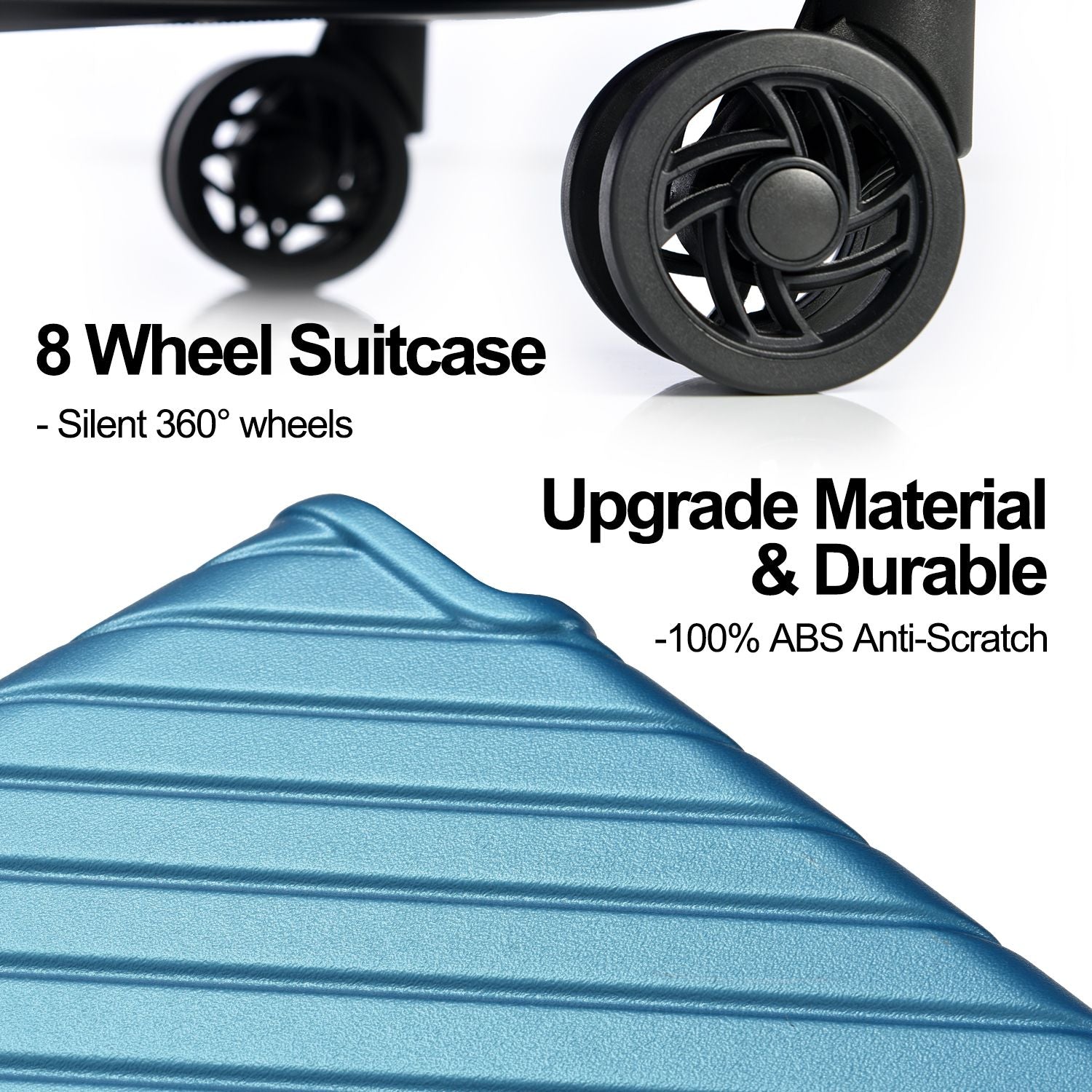 The Upgraded Version of ABS Matte TextureSize:20": 13.8" x 8.9" x 22"24": 17.01" x 10.9" x 26.07"28": 18.9" x 12.2" x 29.9"Sets can be stored inside each other, offering more convenience and saving storage space