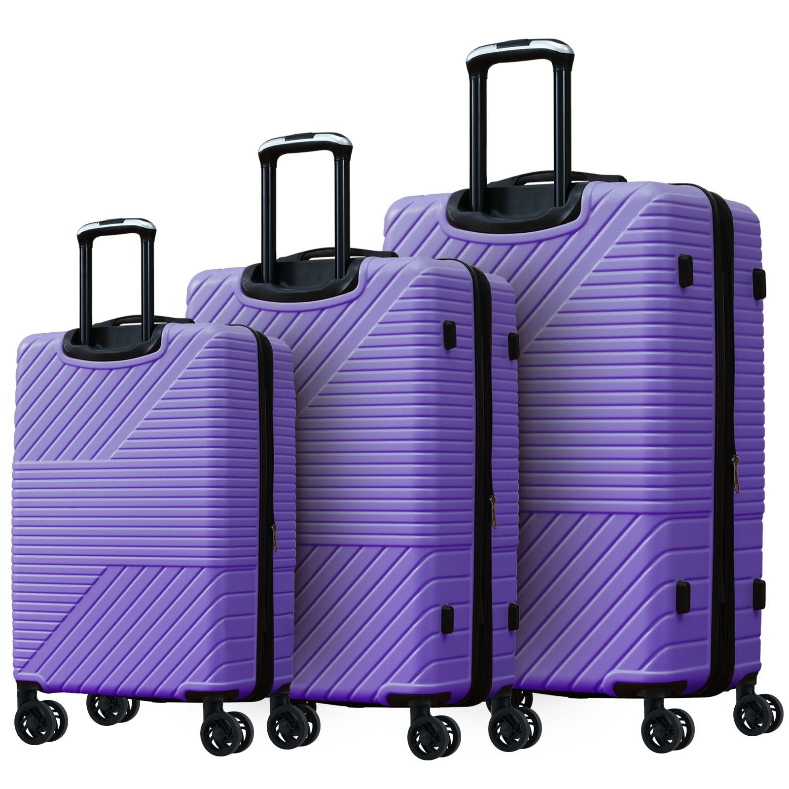 The upgraded version of ABS matte texture, more durable and more fashion. Reinforced grip handles and 4 anti-slip pads on the side bring convenience to travel. Equipped with 3-dial TSA approved combination lock for security.