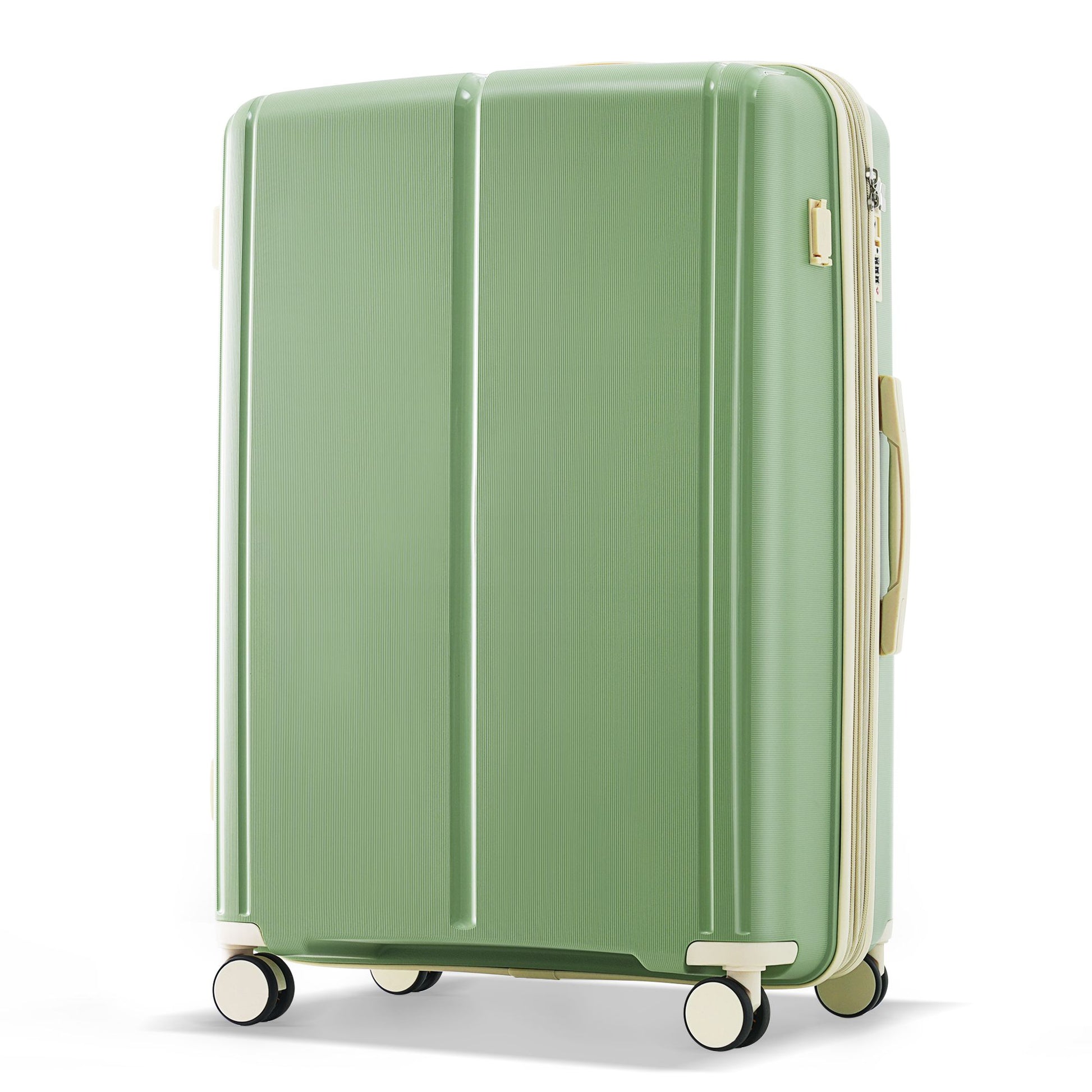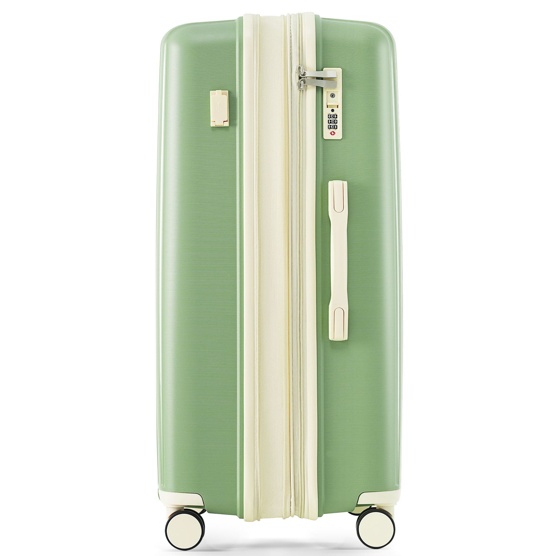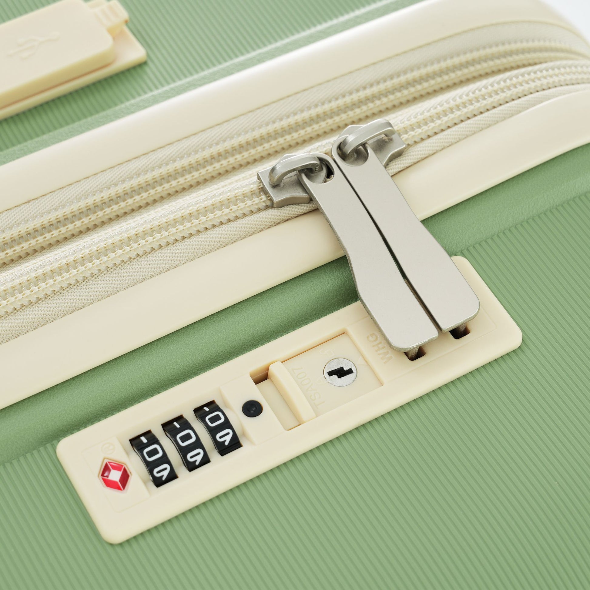 Luggage Sets 3 Piece Suitcase Set 20/24/28 with USB Port,Carry on Luggage Airline Approved,PP Lightweight Suitcase with Spinner Wheels,Green and Ivory