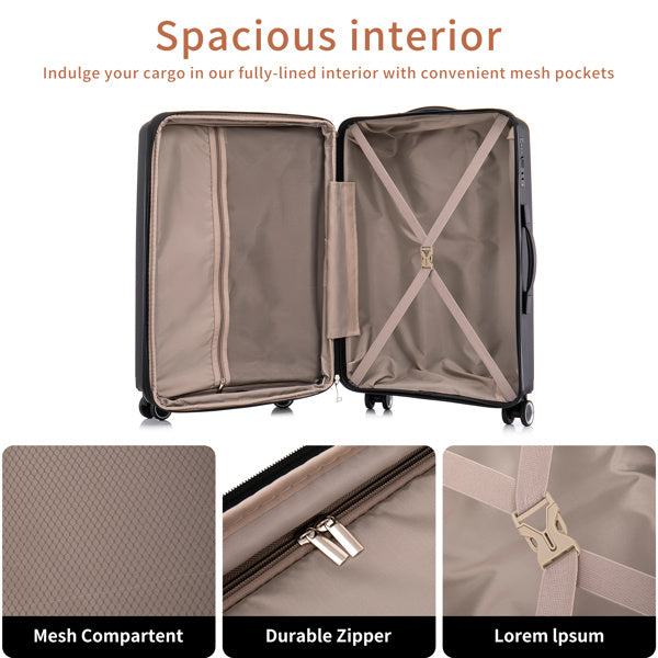 PP Luggage Sets 3 Piece(20/24/28), Expandable Carry On Luggage with TSA Lock Airline Approved, PP materials Hard Shell and Lightweight Suitcase with Spinner Wheels (Black)