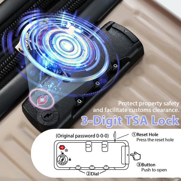 3-Digit TSA Approved Lock: Allows customs to inspect your luggage for customs clearance, ensuring the safety of your luggage.