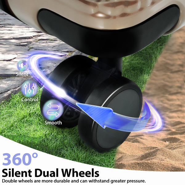 The telescopic handle is adjustable and sturdy, suitable for people of different heights. The 360° dual spinner wheels are highly maneuverable and move quietly and smoothly while on the go.