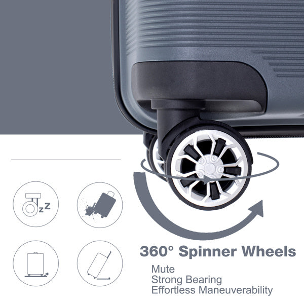 Hardshell Suitcase Double Spinner Wheels PP Luggage Sets Lightweight Durable Suitcase with TSA Lock,3-Piece Set (20/24/28) , Gray