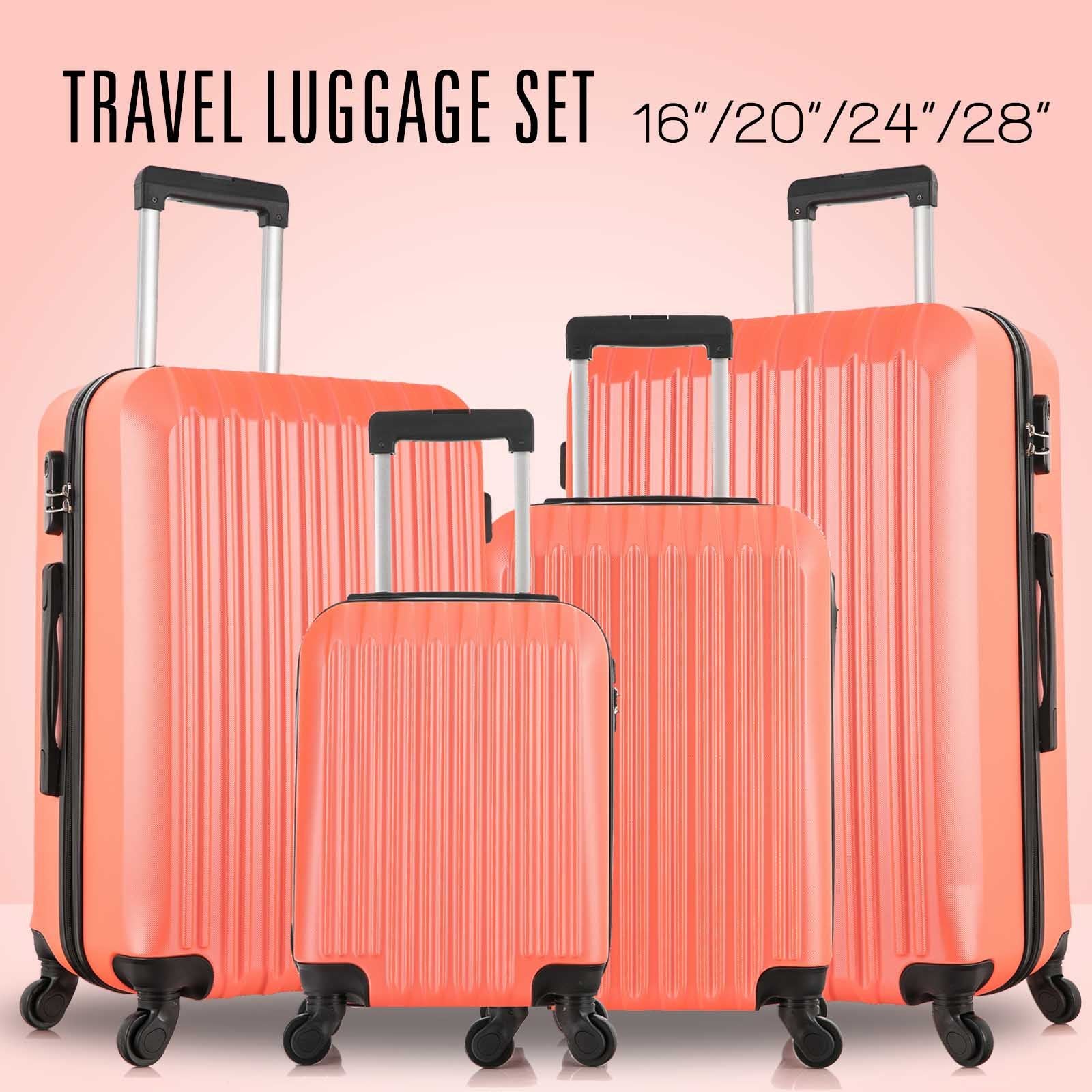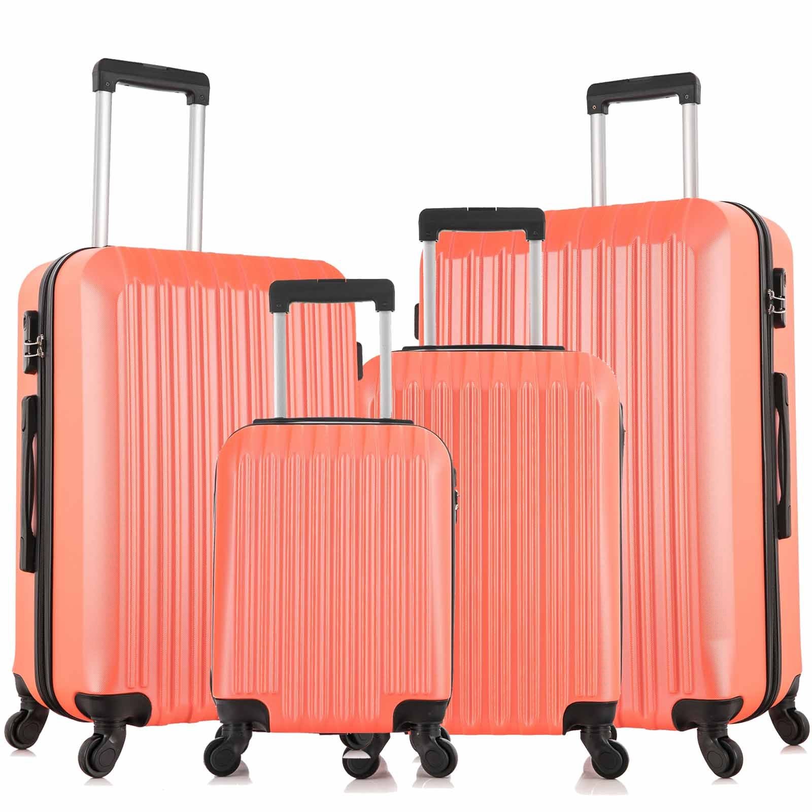 4 Piece Set Luggage Sets Suitcase ABS Hardshell Lightweight Spinner Wheels (16/20/24/28 inch) Orange